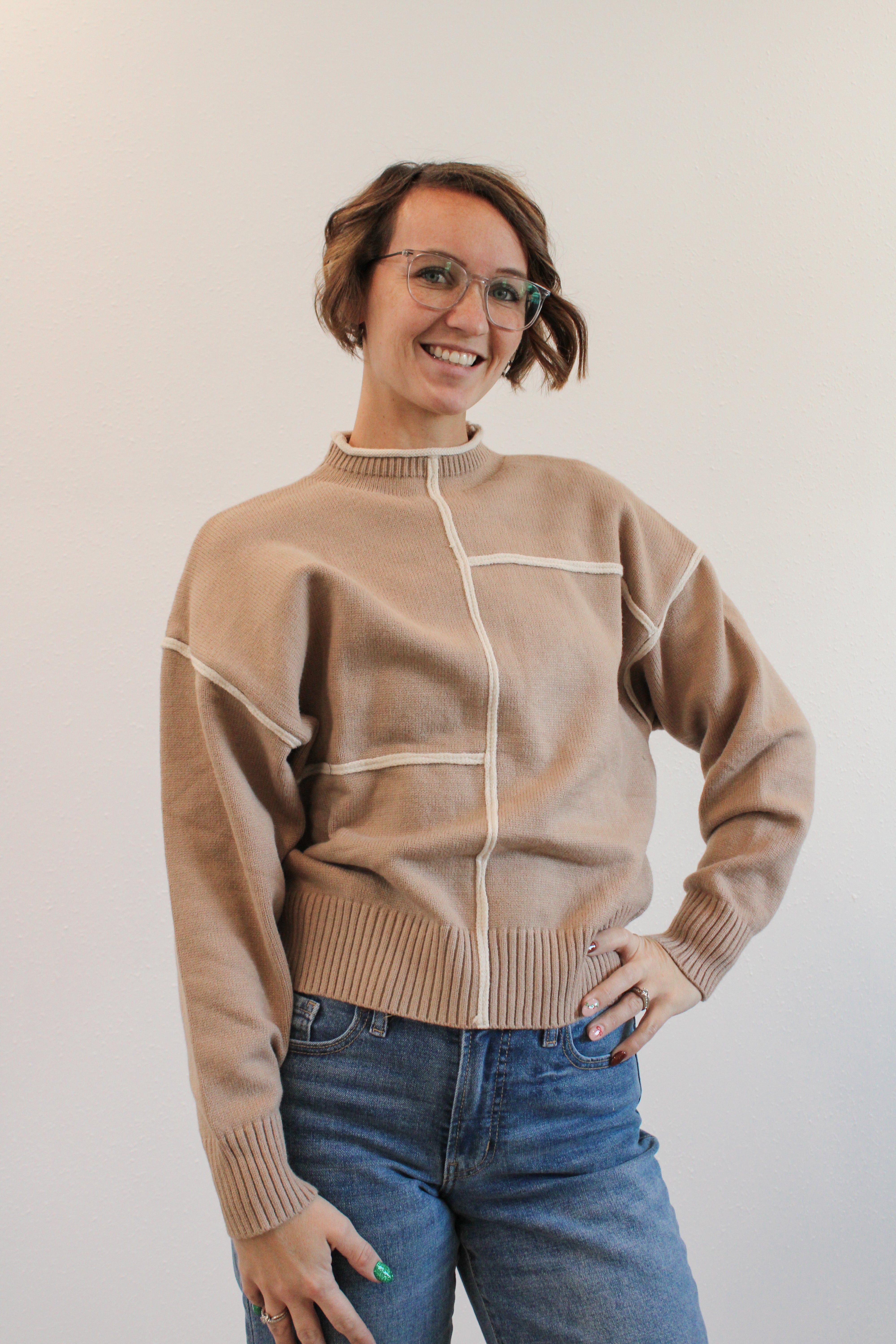 Introducing the Zora sweater - a perfect blend of chic and cozy. With contrast binding and a slight mock neck, this long sleeve sweater will keep you warm and stylish. Embrace the colder weather with this must-have addition to your wardrobe.
